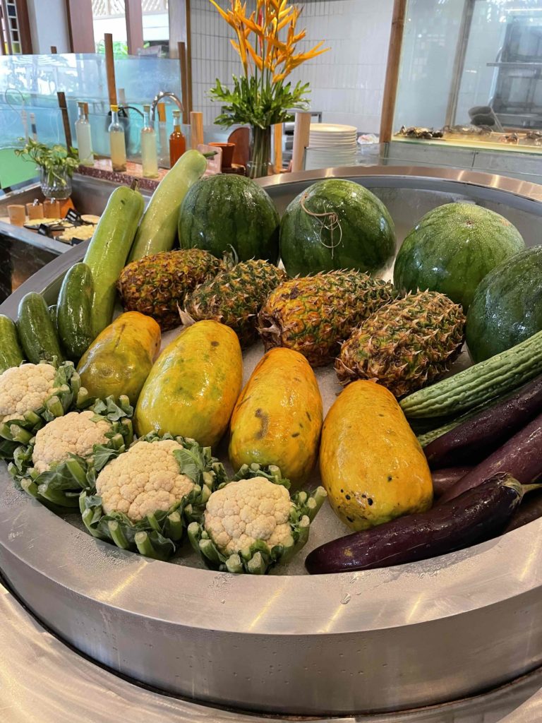 私の朝食はフルーツから始まるので、南国ならではのマンゴーやスイカ、パイナップルなど、いただけるのも嬉しいです。