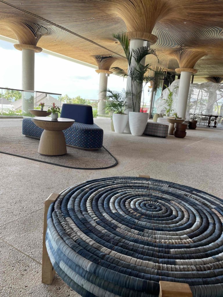 ホテルのデザインはフィリピンの伝統工芸と現代的なラグジュアリーが融合され、内装には、竹やココナッツウッド、伝統的なバニグ(編みござ)といった自然素材が随所に使われ、地元職人の手仕事による温かみある空間が広がり、心地よい空間。
