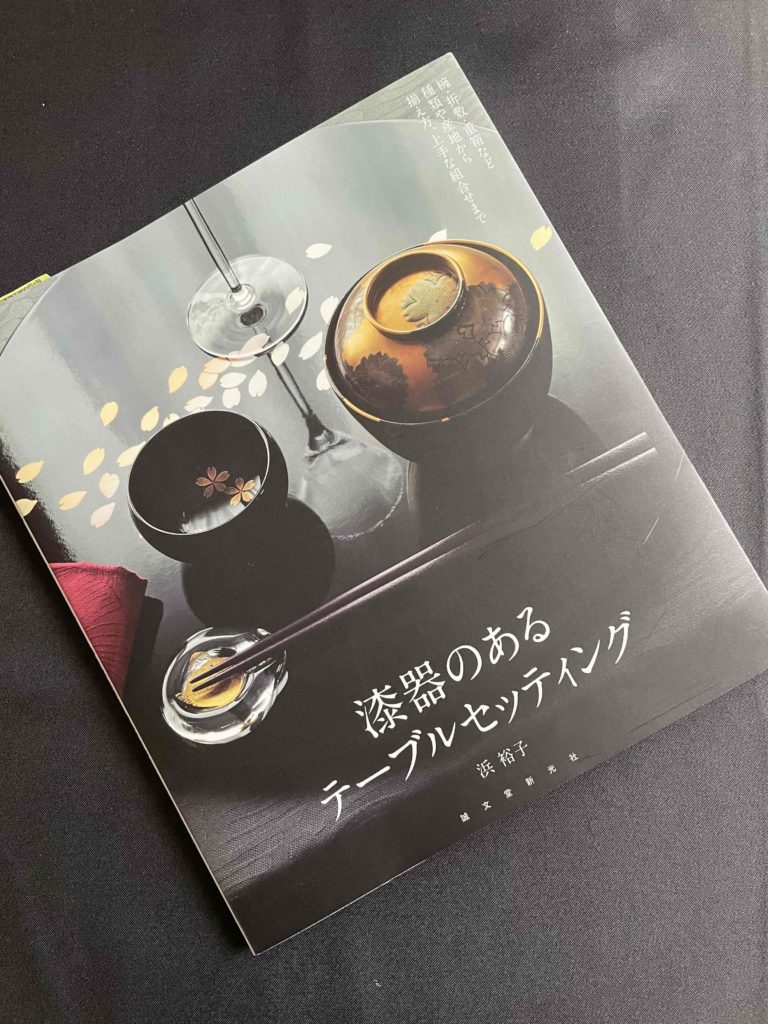 この桜の折敷は、誠文堂新光社から出版いただいた浜の著書「漆器のあるテーブルセッティング」の表紙でも使われています。
