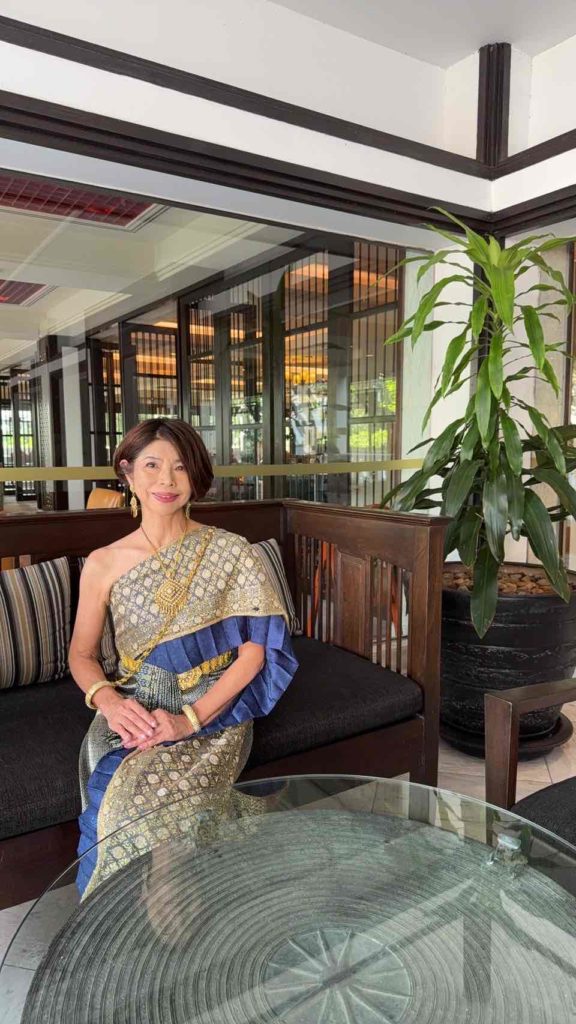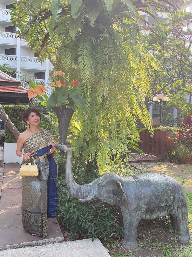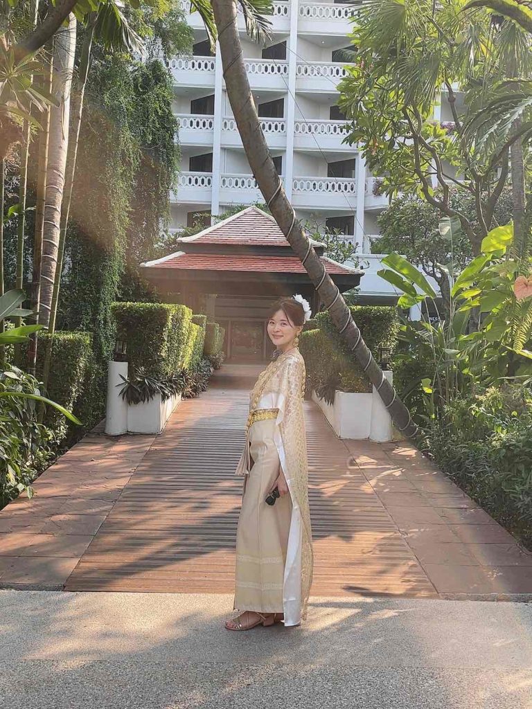 私たちが泊まったタイの伝統的建築様式のアナンタラリバーサイドリゾートはとても素敵なフォトジェニックな場所がたくさんあるので、タイの民族衣装シワーライを着てお写真をたくさん撮りました![]()