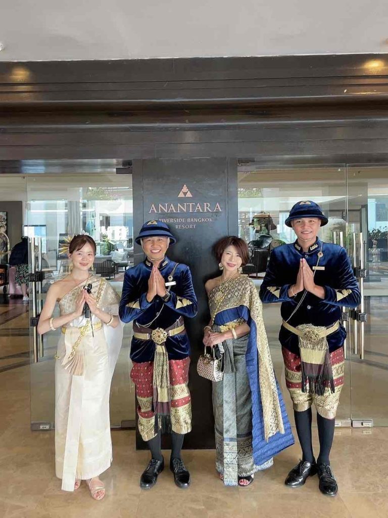 アナンタラのスタッフの方々の制服は民族衣装なので、ドアマンさんとも一緒に写真を撮っていただいました。