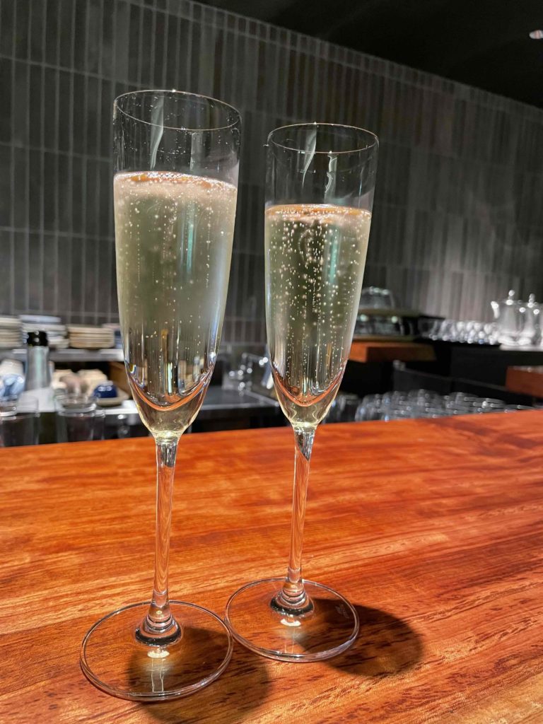 ウェルカムドリンクにスパークリングワインをいただき、素敵な空間の中で、素材を十分に生かした料理の数々をいただきました。