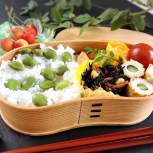 秋田の伝統工芸品、大館の曲げわっぱのお弁当箱で、ランチ。