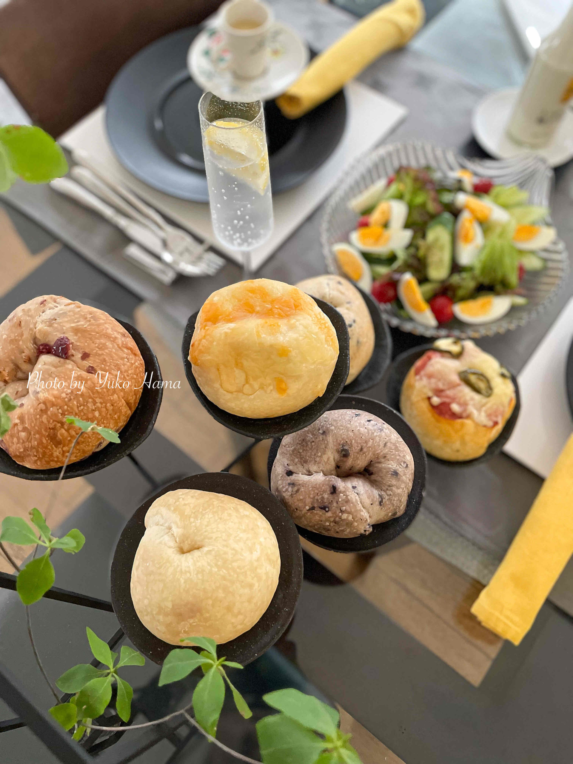 ベーグルが主役のテーブルコーディネート。