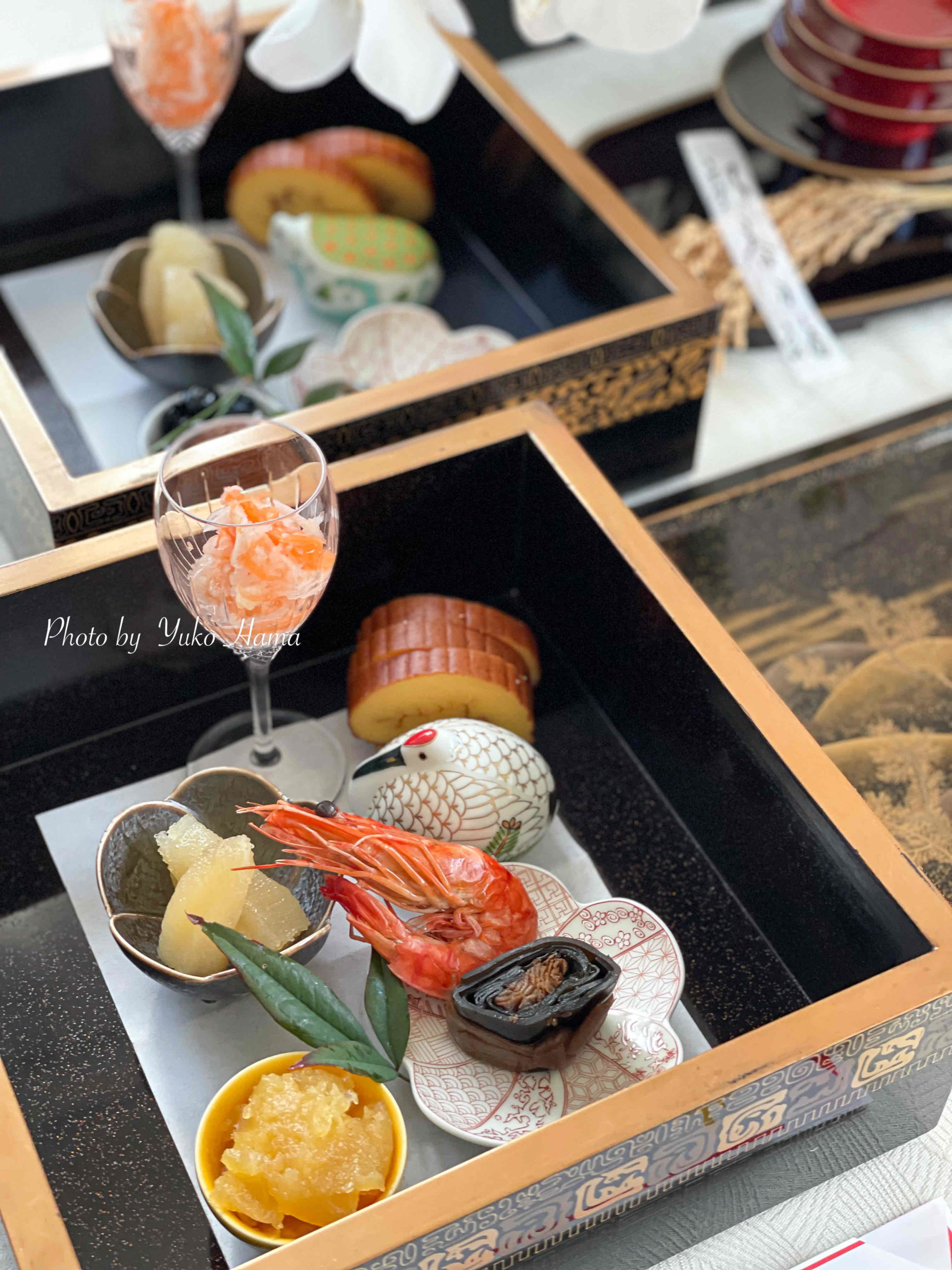 おせち料理は、伝統的にお重(福を重ねる)詰める大道のほか、ワンプレートや、写真のようにお重をばらして中に・・・