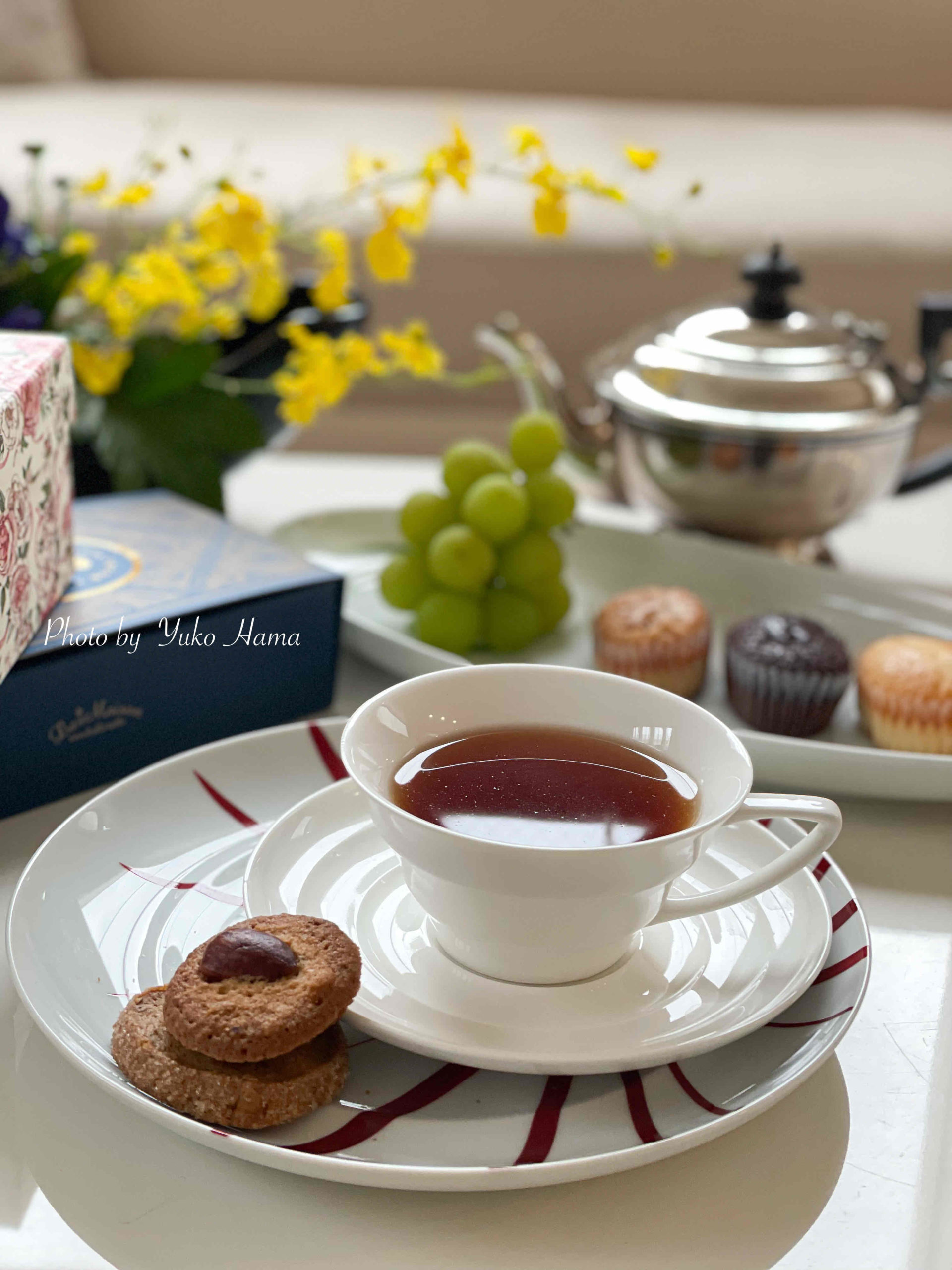 いただいた焼菓子でのひとり時間のおうちカフェ。お菓子のお箱も可愛かったので、一緒に。