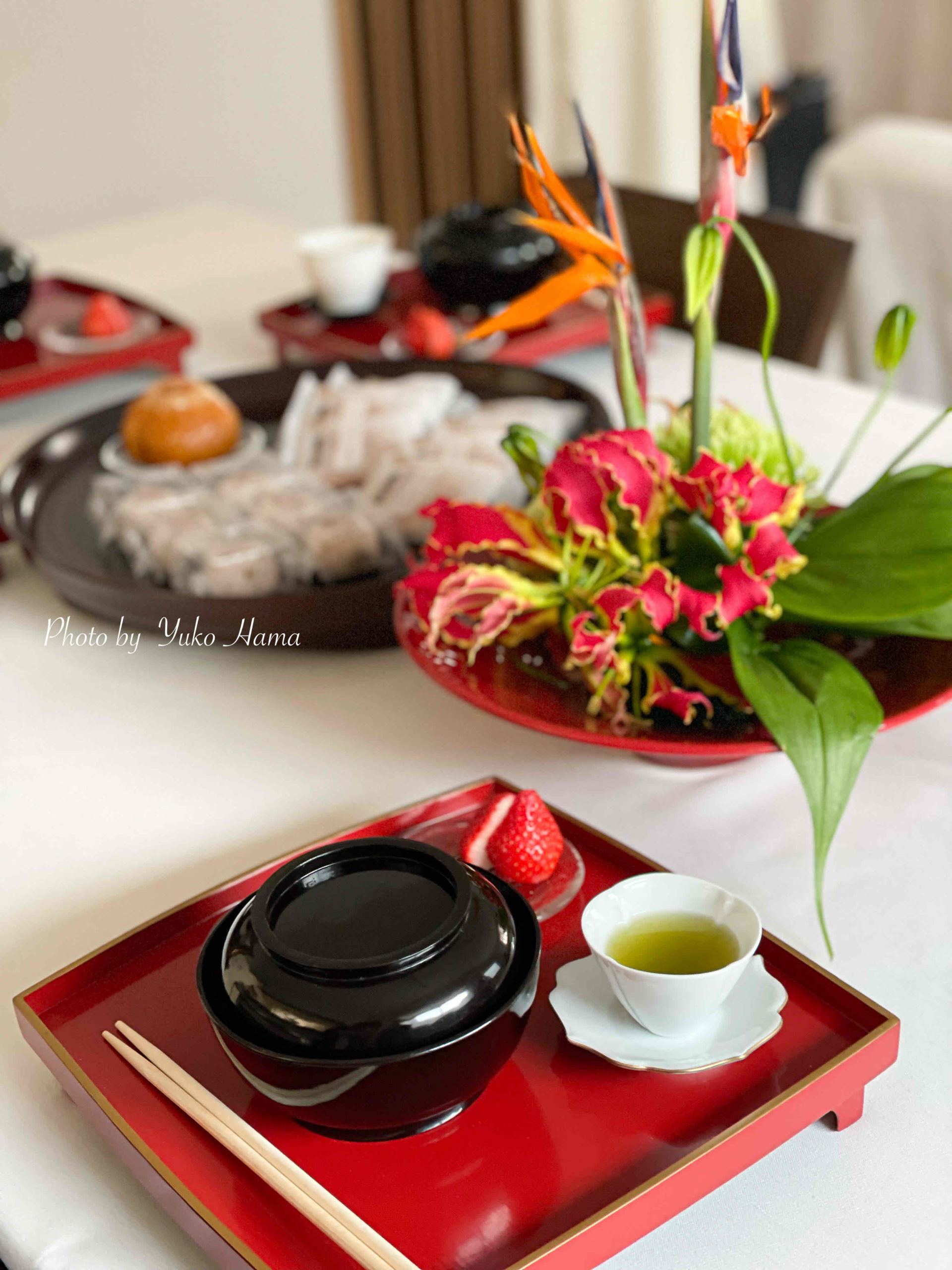 いちごと塩昆布を添えて、上等なお茶と共に。